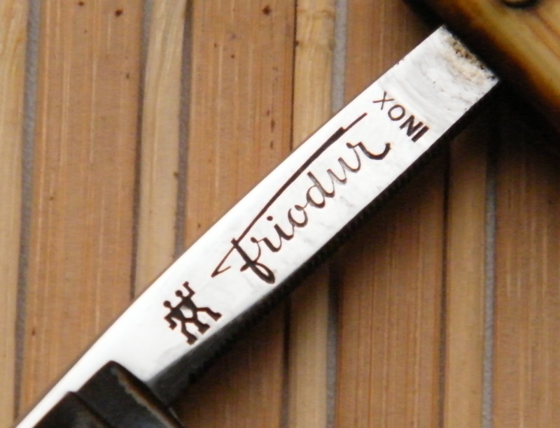 Прокладкой между частями ручки служит свинцовый металл. К сожалению, такие перламутровые ручки довольно хрупки. Большая удача для современного коллекционера – найти образец этой красивейшей ручки без трещин и сколов. Мне повезло найти две такие бритвы, но обе были со сломанными ручками. Было отмечено, что ручки были разных размеров под разную ширину бритв.