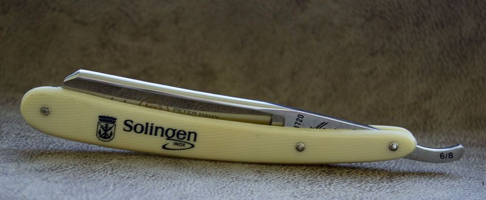 Германия. Золинген. Бритва 60-70 гг. выпуска в состоянии новой. На полотне травление, посвященное Петеру Хану. Ширина 6/8, сталь Inox, массивная и удобная бритва, скорее всего выпускалась фирмой DOVO. Продано Spoiler Show