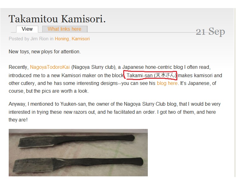 На ручке иероги 天水 , 天- Тэн или Ама, "небо". 水-суй, "вода". Но в данном случае фамилия, и они читаются как " Таками". http://easternsmooth.com/blog/jim-rion/ ... u-kamisori" onclick="window.open(this.href);return false; Челябинские мужики настолько суровы, что правят бритву не на ремне, а на роже.