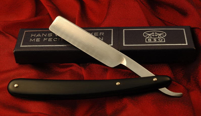 Ширина полотна 5/8", вогнутость 1/1, современная немецкая нержавеющая дамасская сталь. Уникальная современная бритва, выполненная известным немецким мастером из г.Золинген – H.W. Boker.