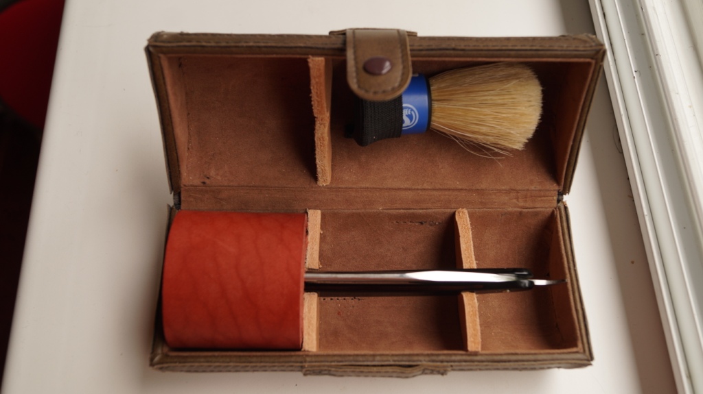 Re: Футляр для опасной бритвыВ немецком несесере отца помазок просто упаковывался в алюминиевый футляр - а потом уже под резинку крепился