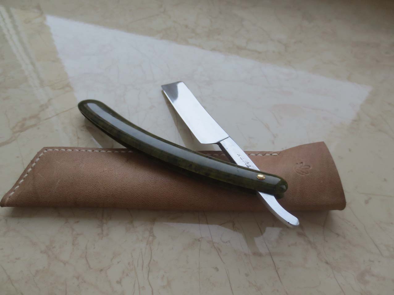 Прекрасная чистая бритва , обладает мягким и приятным резом. Ширина 5\8, очень удобный размер для освоения этого истинно мужского занятия. Бритва заточена и полностью готова к работе. Кожаный чехольчик для хранения. Spoiler Show
