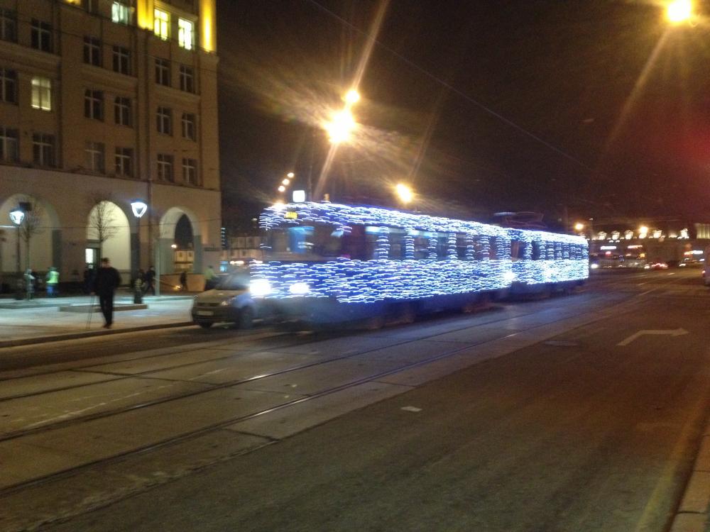 Re: Наши фото. Просто фото сделанные нами.Праздничный трамвай маршрута "А" ("Аннушка") - один из самых старых трамвайных маршрутов в Москве. В таком виде уже пару месяцев катается. Снимал на телефон да еще и в движении, так что качество не ахти, смазались огоньки.