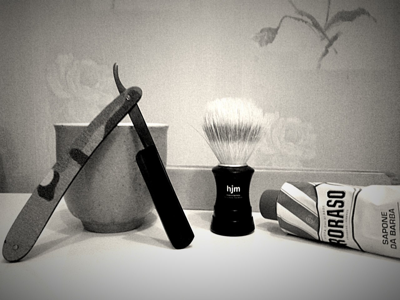 Что мы имеем? - бритва Le DANDY Thiers-Issard - ремень от Sandr - обычная пена / гель для бритья из Окея После покупки бритвы с ремнем, брился раза 3-4... ну как брился? пытался бриться. Фразы типа: "бритва бреет очень гладко", "кожа после - как попка младенца", "бритва скользит как по маслу, не встречая никакого сопротивления" и тд. - точно не про меня Все попытки сопровождались кучей порезов, бритва не сбривает щетину так легко, как это например во многих видео у Сергея В., даже близко. У меня же бритва... как бы упирается в волос и "не идет", а если поднажать, то цепляется за волос и он тянется и.... вобщем это очень больно, особенно в районе усов и подбородка. Бритву, конечно же, старался держать правильно. Пробовал брить под различными углами, начиная от плашмя (как если бы мы правили бритву на ремне) и примерно до 30 градусов. Я даже пробовал Вортановские сссекающие движения. Но в итоге щетины остается даже больше, чем после моей электробритвы, и добриваться приходится старым добрым жилетом. Может у меня волос на лице слишком жесткий? На руке все легко сбривается, вот бы и на лице так. А может бритва недостаточно острая? (щас помидорами закидают А может нужна распарка и мыло для бриться с помазком? хотя, на мой взгляд, это не сыграет большой роли Или все же руки кривые? Жаль некому дать попробовать побриться своей бритвой.