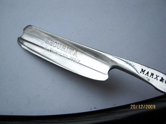 Помогите установить приблизительный год производства.Доброго всем дня,обращаюсь к вам знатоки,дабы узнать дату изготовления бритвы недавно купленной у одного нетрезвого индевидума за 200гривень.Хотелось так-же узнать приблизительно ценность данной бритвы,не в том смысле сколько она стоит,а стоящая ли это вещь для подарка? Еще конечно интересует из чего сделана рукоять и качественная ли сталь ?