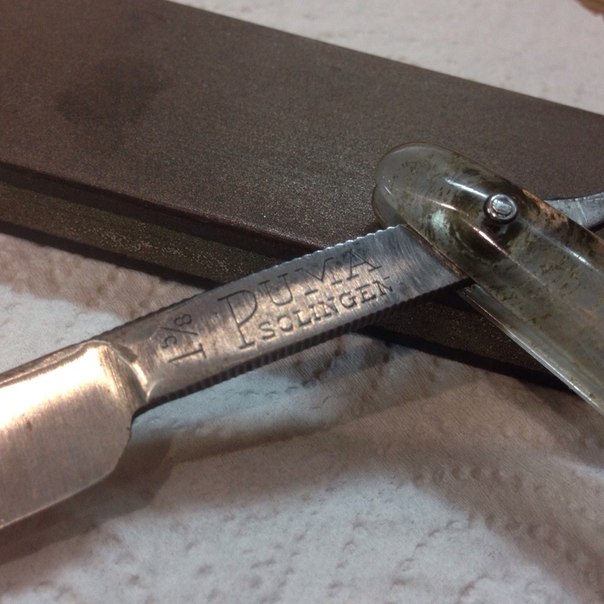 Наткнулся сегодня на барахолке на такую бритву, не знаю почему, но очень захотелось и прикупил... интересует ваше мнение- на сколько она живая, можно приспособить для бритья? ручка явно не от этого клинка, но это не страшно, руки, знания и материал есть-сделаю новую! Что значит 1? 5\8-это как я понял ширина в дюймах, получается 15мм, реальная ширина 12мм 9маловато наверно) и режущая кромка под ногтем прогинается((( Наша работа во тьме- Мы делаем, что умеем,