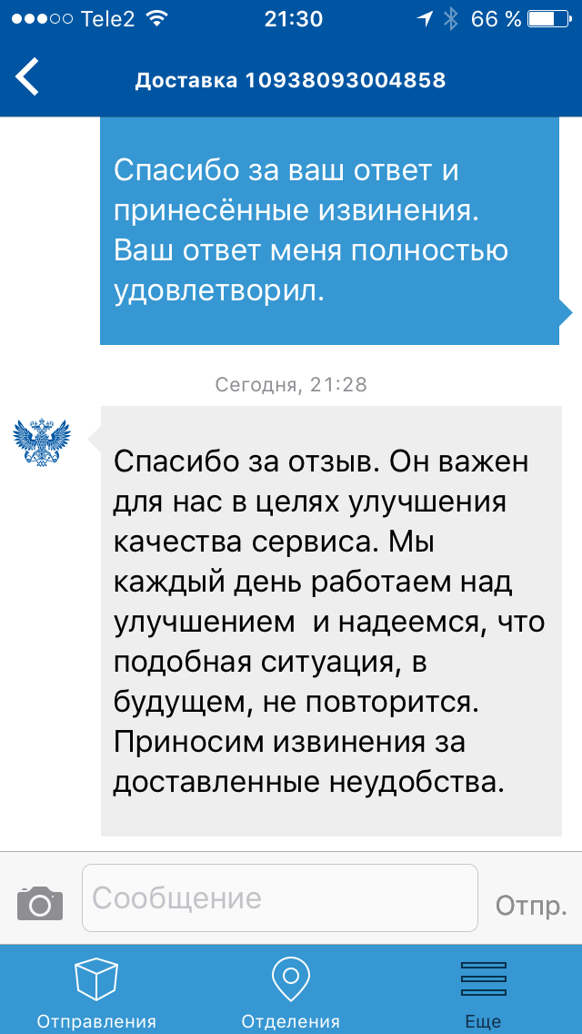 Re: Проблема с Почтой России... Выслушаю советы.Почта России принесла свои извинения. На данном этапе меня это вполне устраивает. Ниже переписка. Кому не интересно - можно не читать. Суть я изложил выше.