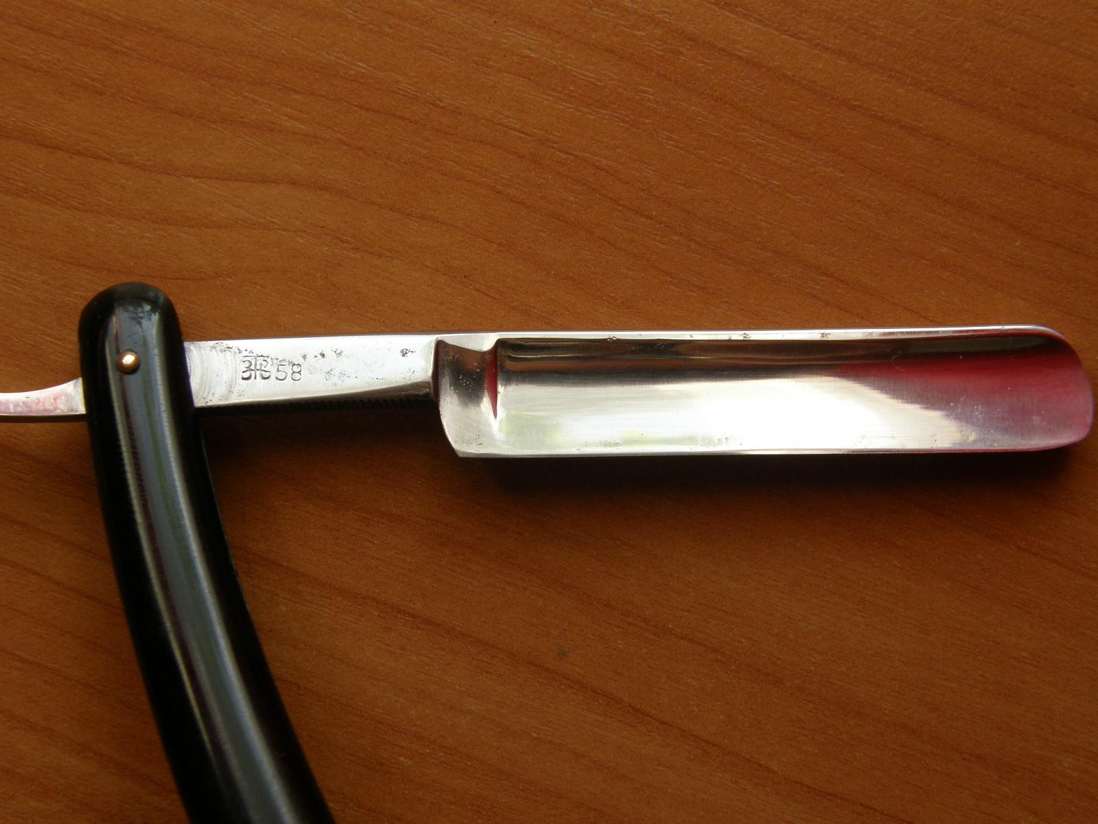 Re: как новичок тренируется (издевается) над старой опаснойНедавно начальник принёс ржавую побитую ржой бритву, и попросил почистить и заточить. На мой ответ что лучше обратится к настоящему мастеру, который сделает всё возможное чтоб восстановить её. Но наверное понял, что это будет стоить больше чем стоит сама бритва, сказал что бриться ею не будет просто пусть лежит заточенная. Я как смог почистил и заточил, бреет очень мягко (даже не хотелось отдавать) Пятка на миллиметра полтора была ниже режущей кромки. Пришлось выровнять, но при заточке возле пятки на ребре жёсткости вышли вот такие треугольные штуки. Хочу спросить как точат бритвы с такими усилителями ( или как их там) ? Или стоило со шлифовать метал вообще до толщины клинка на всей бритве? Вот фото только в процессе заточки, к сожалению сели аккумуляторы а зарядное испорченно.