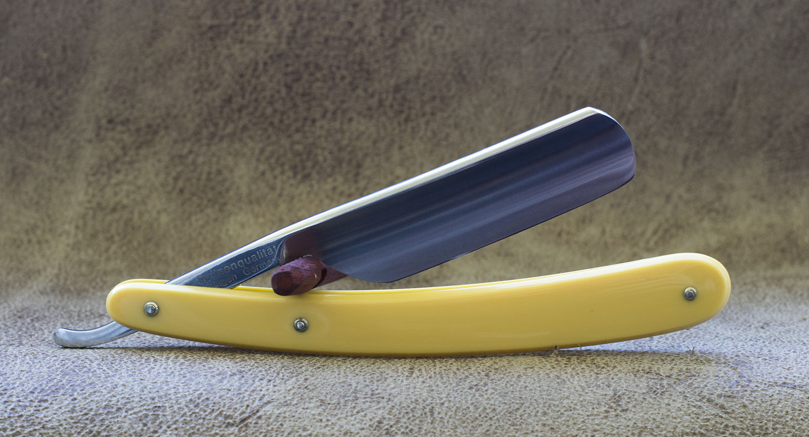 Известная в США марка бритв, никогда не была в использовании, заточена и готова к бритью. Родная рукоять из за своей непригодности была заменена на новую из красного акрила. Ширина 5/8 +. Рекомендую новичку в качестве стартовой, отличная геометрия, качественная углеродка, вороненый эрль. Продано Spoiler Show