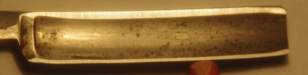 Вот на этом фото видно лучше всего фаска по которой заточено - не просто было поймать на фотоаппарат. А то часто покупатели (в основном очкарики  как и я) фаску по которой заточено не видят на фоне поднутрения