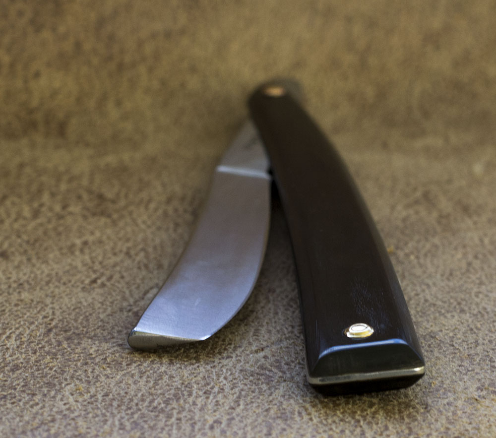 Бесхвостый французский микротом из Лиона, во всех отношениях примечательная бритва. Отличное состояние, прекрасная геометрия, родная роговая рукоять. Ширина 23мм. Полноценные 7/8. Заточена, готова к бритью. Бесхвостые французские клины принято датировать началом 19 века, думаю микротом тех же лет или чуть более поздний. Продано. Spoiler Show