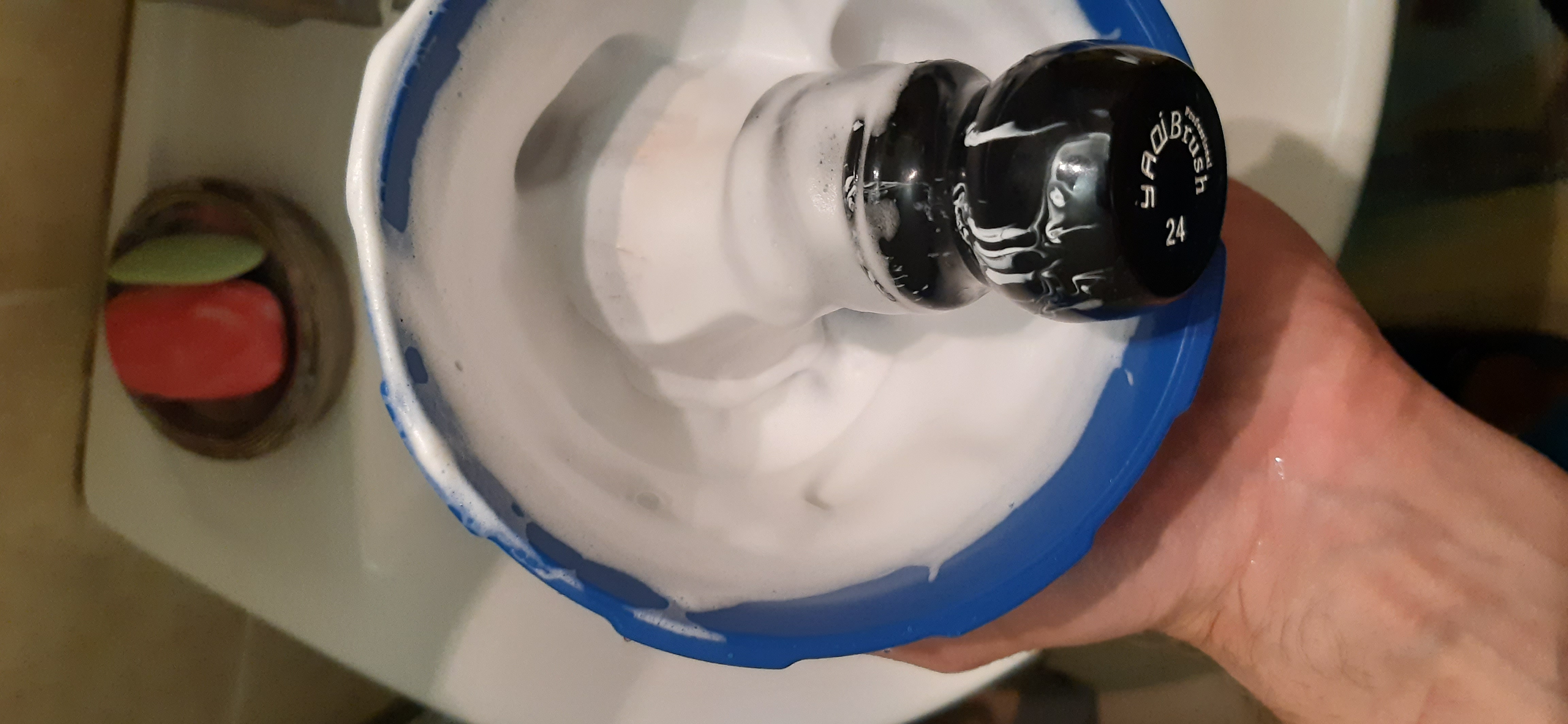 На днях вновь решил проверить мыло от Лелика, которое просто лежало голое в ванной уже с полгодика или больше. Но добавлял в чашку капельку дешевого крема (это 2 мм). Пена замечательная, стойкость отличная. Ничего другого и не надо. Правда пока не проверил в чистом виде без крема, может уже и добавок не надо, вполне вызрело