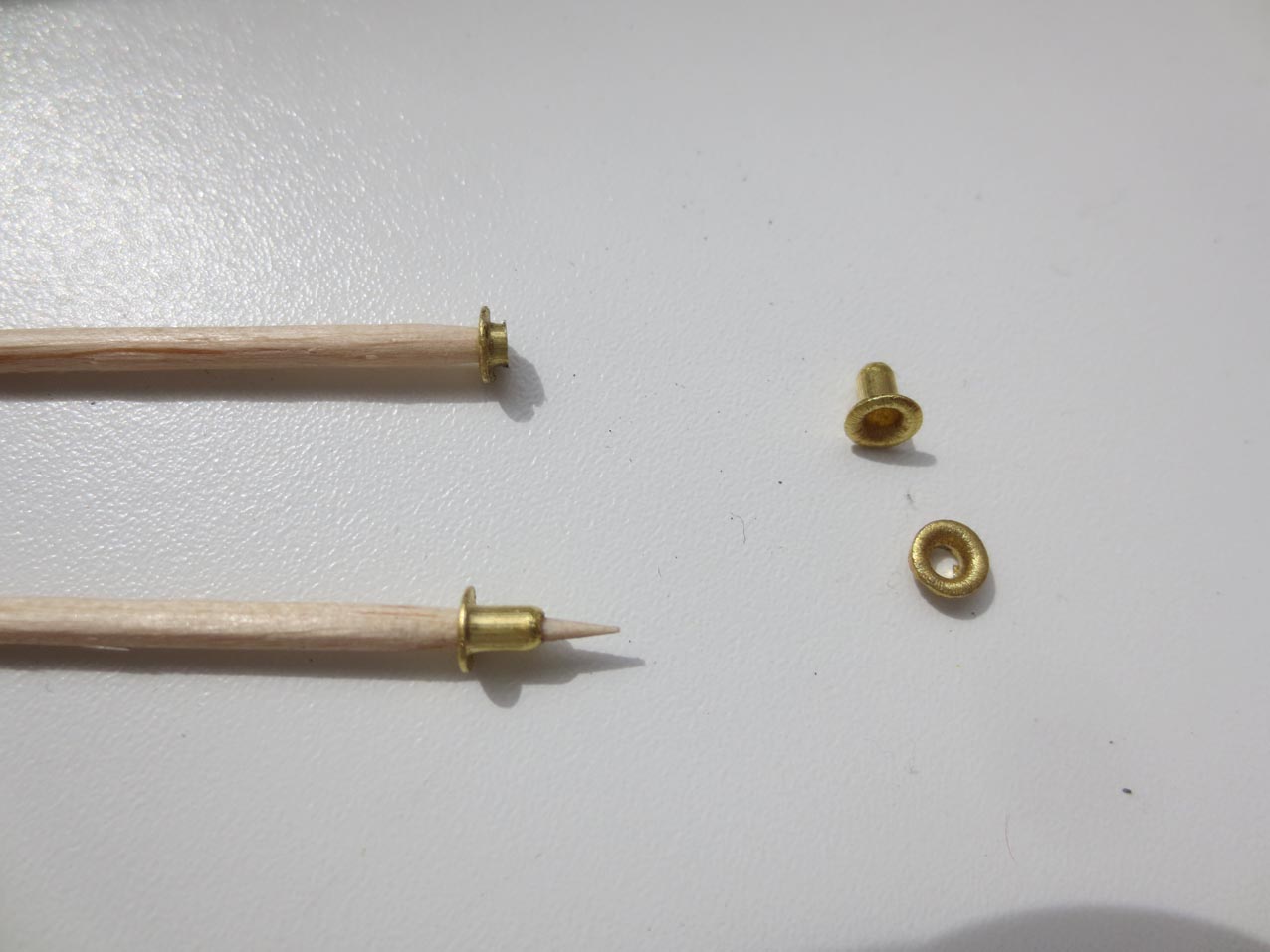 Внутренний диаметр если не стачивать - 1,4 мм, работаю с таким прутком.. Если стачивать по верхнюю часть, то влезает и 1,6 мм... Наружный диаметр -2 мм, поэтому обычно делаю отверстия сверлом на 2мм, ножку люверса не стачиваю, вставляю так, а внутрь пруток 1,4, - ножки встречных люверсов друг друга не достают, что на переднем, что на заднем пине и служат своеобразным усилением... Если нужно сточить, то не откусываю, чтобы не было замина, а одеваю на зубочистку и стачиваю на точиле, как на фото... Бесит, когда приходится пользоваться бритвой моложе себя...