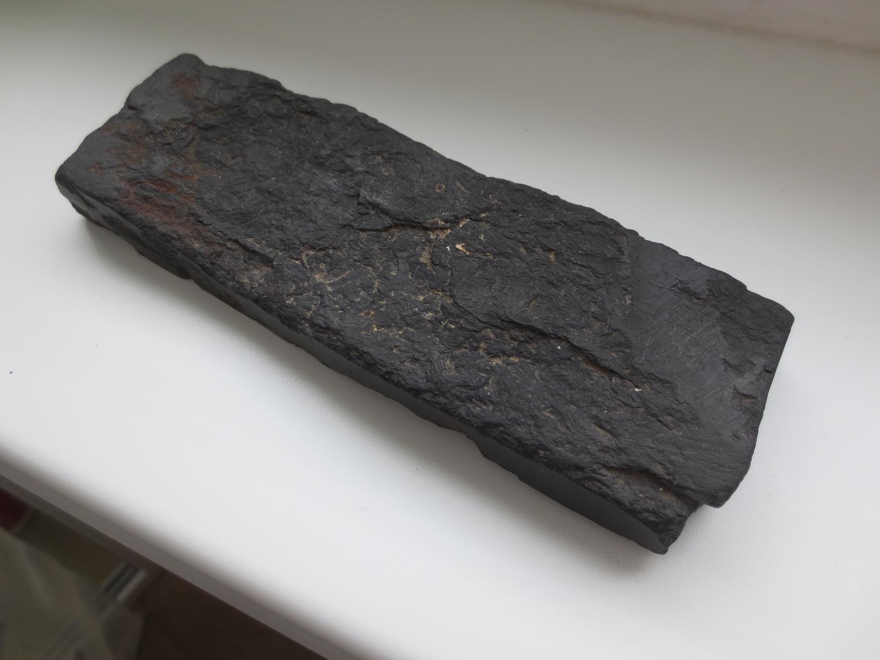 Re: Помогите определить каменьПопался вот такой камень.. Размеры 15,8 на 5,5 см примерно ... Края неровные. Думаю сланец, что скажете? Как определить, что за порода... А может сразу на помойку?