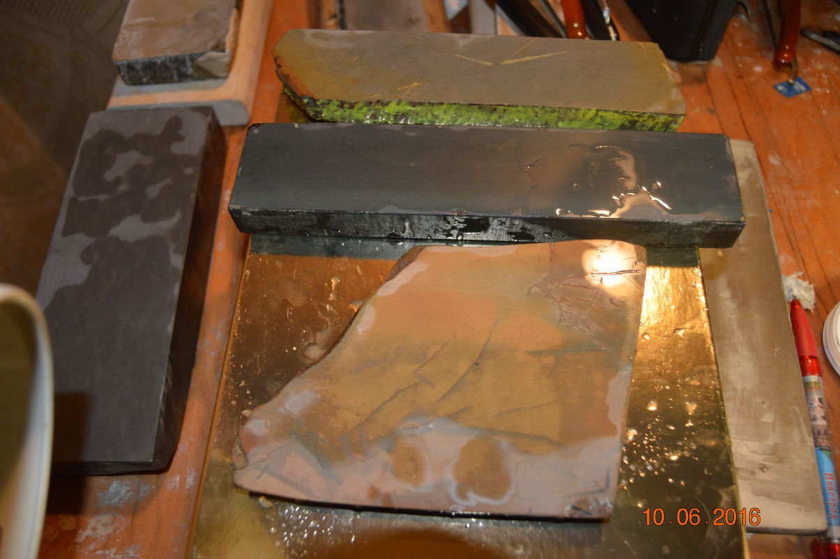 Re: Японские натуральные водные камни, и их свойстваВот такой не дорогой ручной камешек(первый) твердость около 5, суджи в двух дальних углах, надо было очистить, но результат того стоит, вся финишная работа около 3-4мин