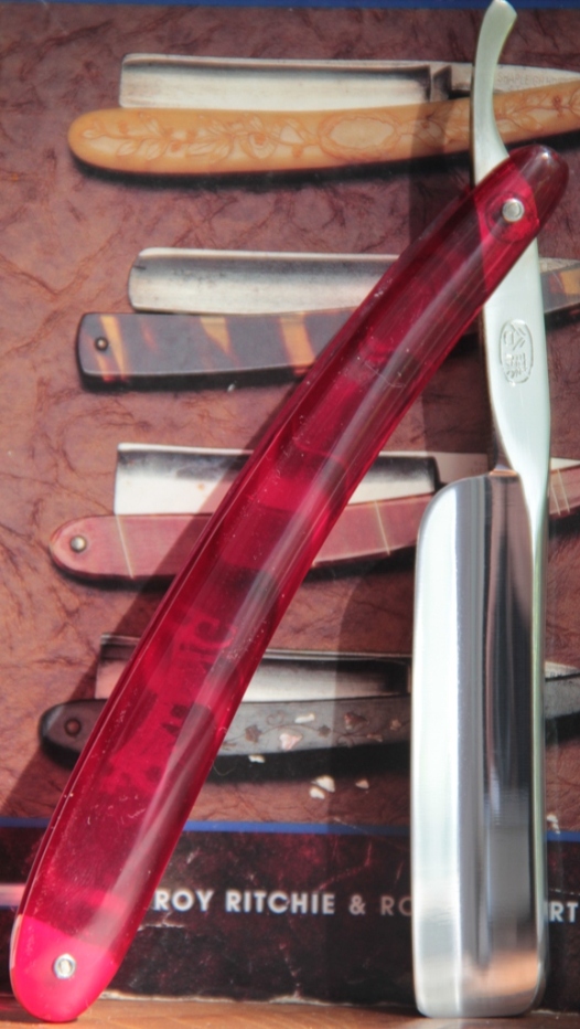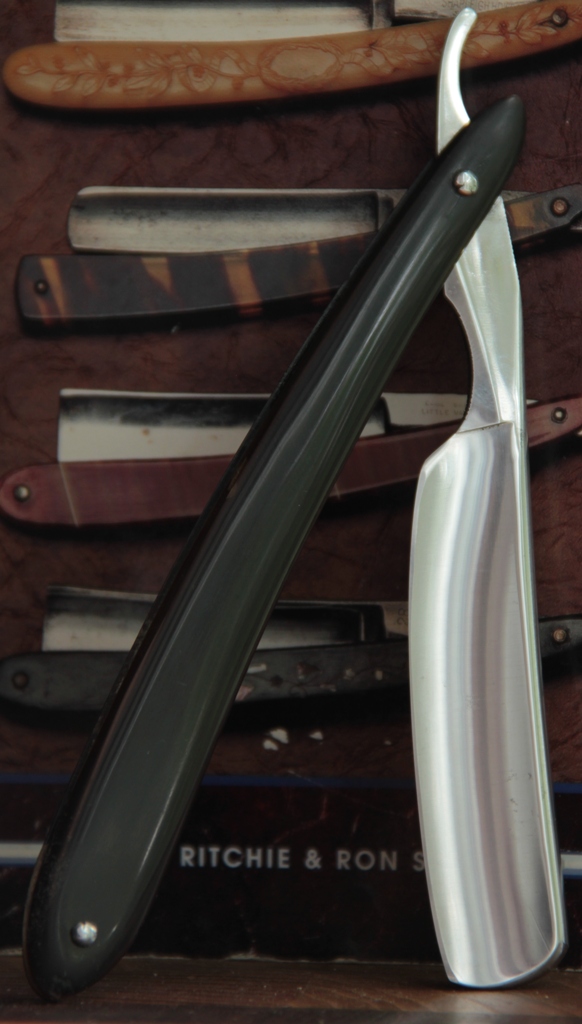 Бритва имеет толстый обушок, в связи с чем бритва несколько тяжелее своих собратьев такого размера. Из за своего веса и толстого обушка, бритва очень хорошо и легко точится без особого давления на кромку.Всё делается практически под собственным весом. Бритьё бритвой с таким полотном приближается к эталонному(ИМХО, конечно). Сталь здесь очень качественная, без каких либо проблем.Бритва совершенно непользованная.Всё оригинальное и ничего не разбиралось и не ремонтировалось. Полотно намертво впрессовано в обух. Бритва будет заточена впервые и подготовлена к бритью.