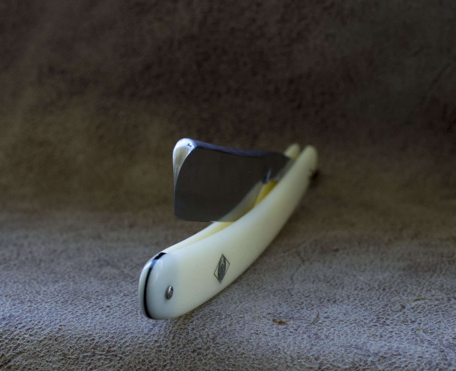 Редко встречающаяся марка бритв из Шеффилда. Ширина 6/8, вогнутость полная или правильнее сказать 3/4, хотя разница между минимальна, эластичная режущая кромка, прекрасная мягкая сталь, новая рукоять из кости верблюда. Бритва заточена и готова к бритью. Одна из немногих бритв, протестированных мной лично - дала очень приятный результат в бритье полутора недельной щетины, причем сохранила достаточную остроту и прошла после бритья тест на рез волоса, рекомендую как новичкам, так и коллекционерам. Продано. Spoiler Show
