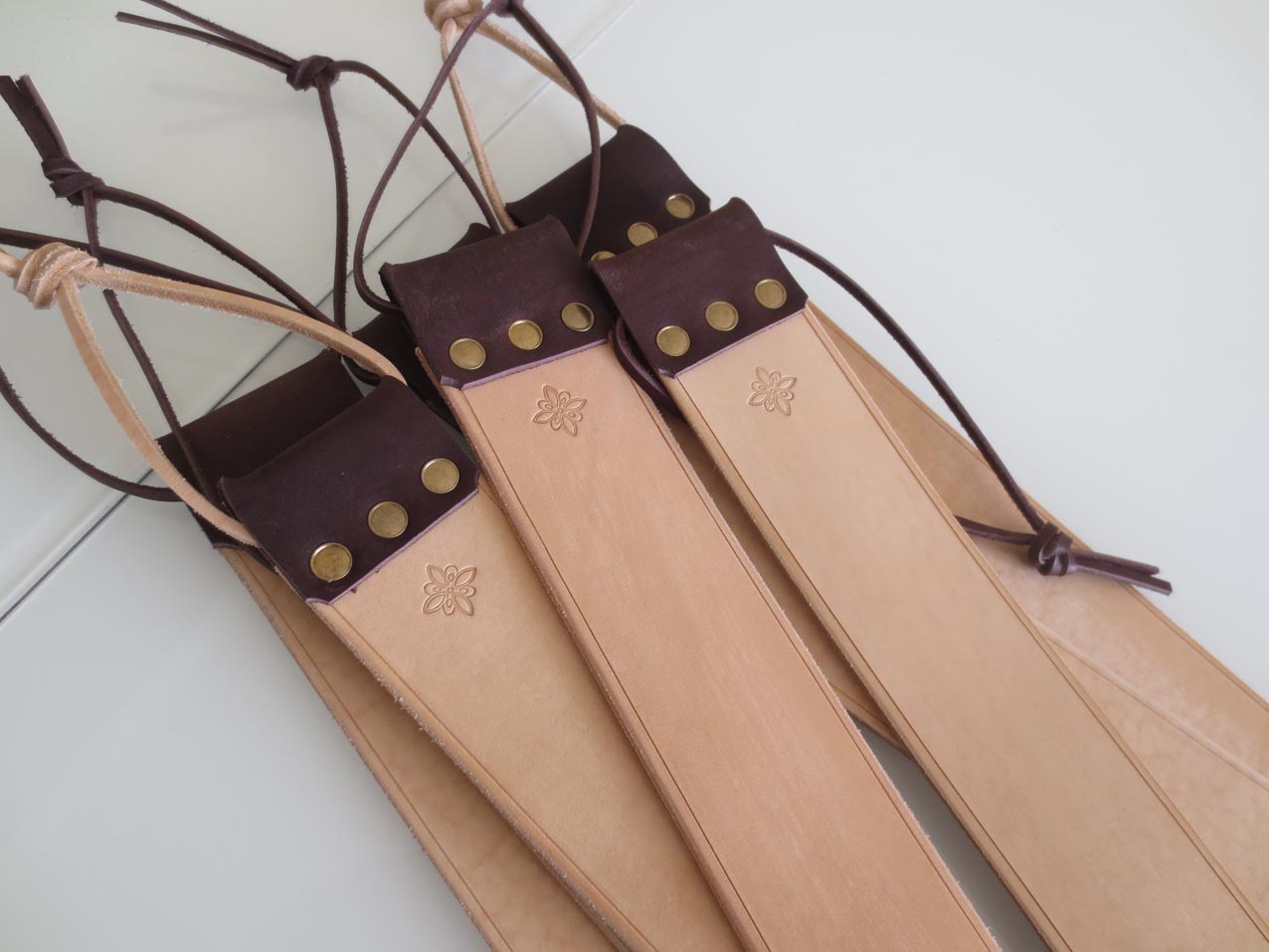 Материал основы - некрашеная кожа растительного дубления толщиной 3,5 мм, чепрак.