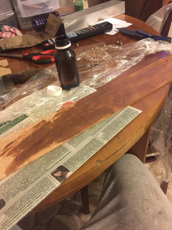 ремень Show Сначала кожу не клеил, использовал на столе. Пастой рисовал на ремне (сначала тренировался на коже без колодке, растирал тряпочкой со спиртом. По ощущениям, кожа сразу твердела. Правил старую ЗТВ51. Потом решил наклеить на деревянную колодку. Дуб из заначки 20летней сушки, твердый зараза, рубанок Sturm плакал, когда встретился с ним В итоге то, что получилось, опробовал уже на свежекупленной породистой немке. колодка с пастированной кожей Show