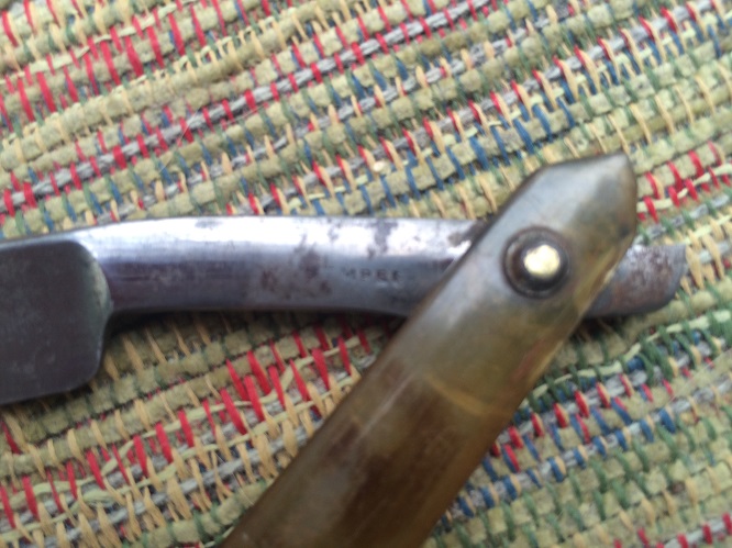 Re: Помогите определить производителя.Французом и не пахнет. Англия, в самом обычном образе. Переделывали ее, но давно, вот по этому и надпись подтерлась, вот по этому и округлости на эрле. Клин утончен, но бритва хороша. Пины поставлены более поздние, но родные (Англицкие). Полотно до 2 половины 19 ст, ручка свежее. Пины по возрасту как и ручка.