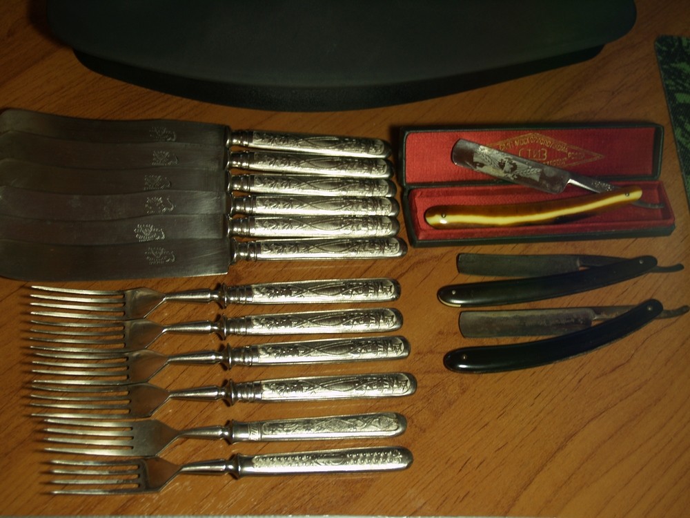 Re: Добыча с барахолкиВзял вышеозначеный столовый набор, а заодно 3 бритвы : ржавый хенкельс, вача 48г и СТИЗ Москва непользованый, но чутка щербатый. Видать, чего резать пробовали, ироды.