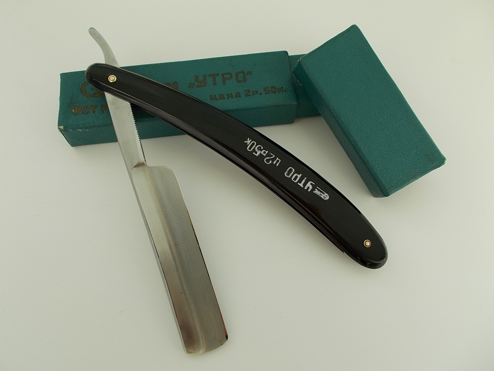 Продам опасную бритву "Утро" СТИЗ, 1970-е. Бритва после реставрации,прошла легкую очистку и полировку. Остались небольшие следы времени в виде темных точек на полотне. Бритва не разбиралась, все заводское. Клинок в оправе сидит плотно, по-центру, не болтается. Бритва не имеет следов использования, заточена мной впервые, готова к бритью. В комплекте кофр для хранения. Отличный и недорогой вариант для новичка. Отправляю почтой, пересыл входит в стоимость. Цена - ПРОДАНО