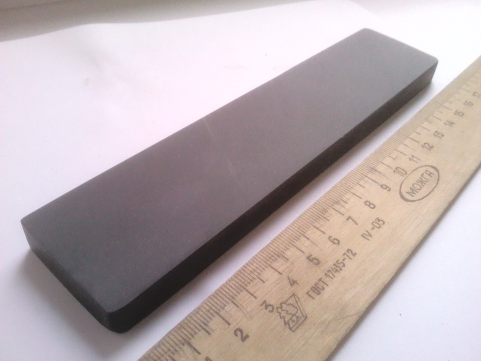Re: Помогите определить каменьКупил на барахолке камень с полностью убитой геометрией, провалы по центры достигали 5-6 мм. После грубой доводке на наждаке и доводки на стекле получился брусок (на фото). При обработке на матовом стекле даже не понадобился порошок, образовалась черная густая пульпа, камень по ощущениям очень мягкий. В сухом состоянии он темно серый, а с маслом абсолютно черный как сажа. Я никогда не имел дело с oilstone, а это именно он и оказался. После капли масла, камень преобразился, у меня появилось мнение, что он доводочный. Короче, хочу узнать, что это за камень, у кого есть мнения на этот счет
