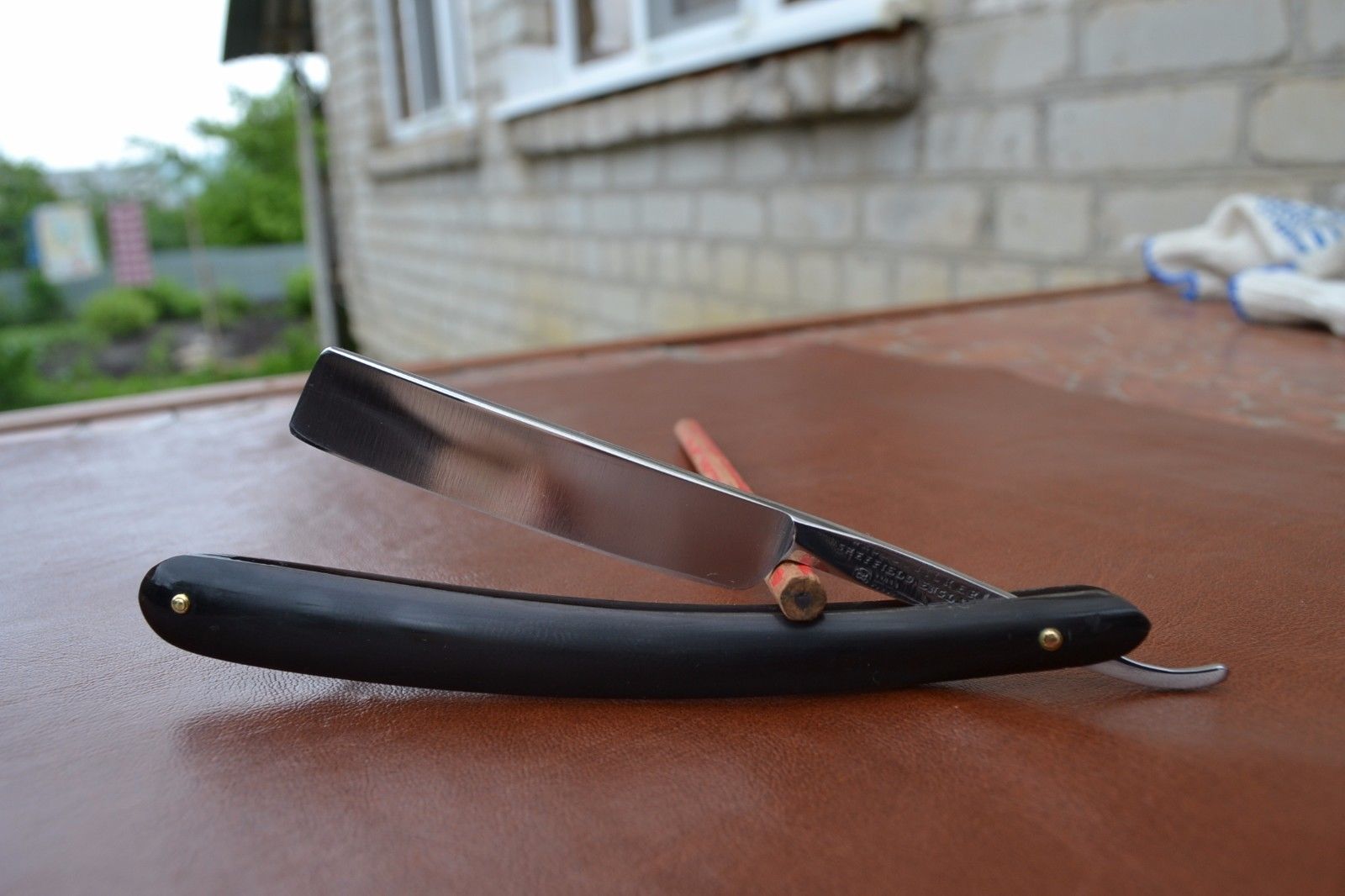 Немецкая опасная бритва из славного города Золинген. Ширина 6/8.(19мм)Толщина обушка 5мм. Углеродистая сталь.Отличная геометрия.Родная 3-х пиновая ручка.Пины латунь.Ручка-пластик.Клинышек тоже. Заточена,готова к бритью. Продана. Spoiler Show Spoiler Show Spoiler Show Spoiler Show Spoiler Show Spoiler Show Spoiler Show Spoiler Show
