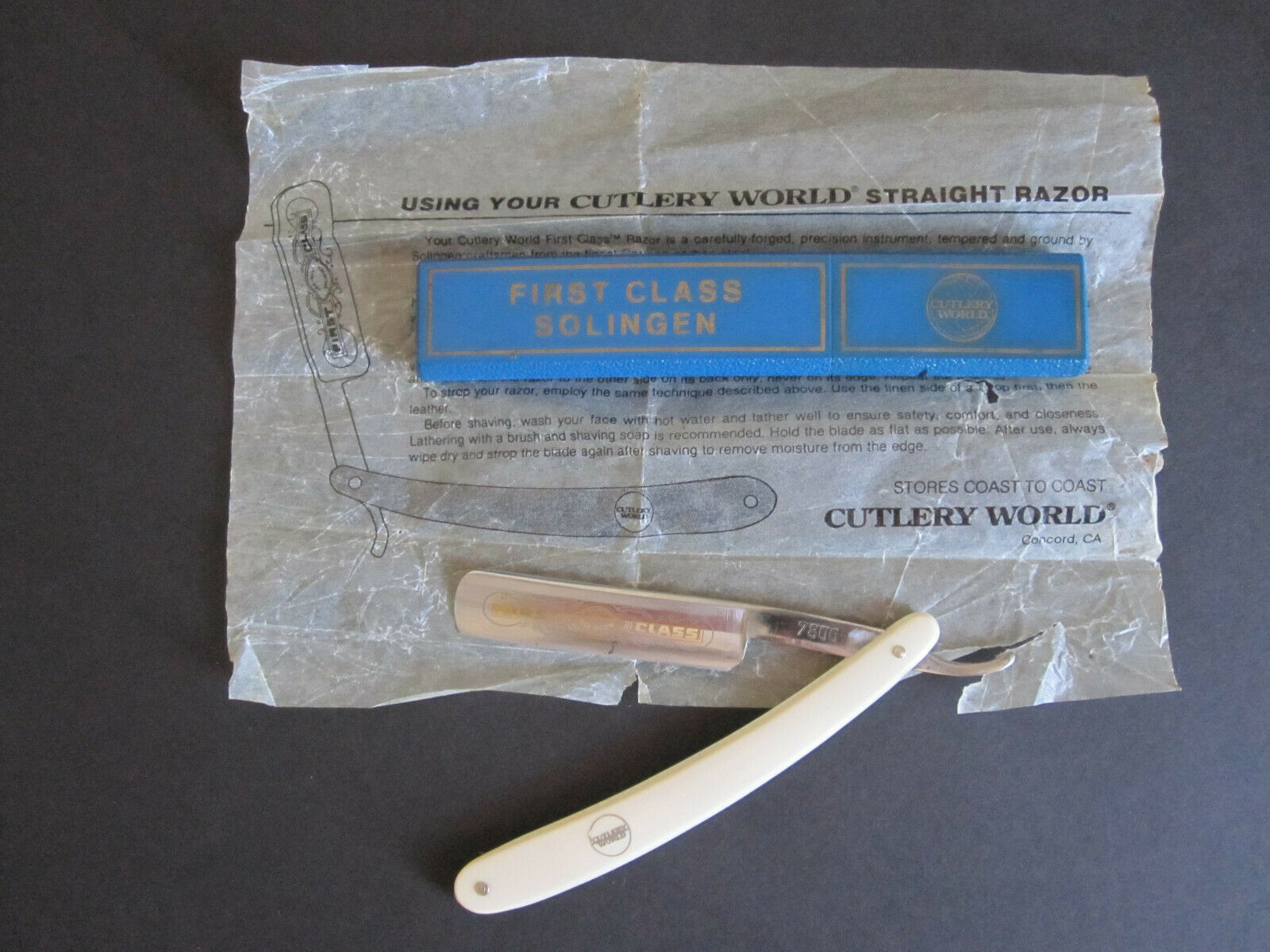 FIRST CLASS SOLINGEN 7803 Cutlery WorldИнтерестна любая информация о бритве. На полотне была затертая гравюра, эту надпись золочением удалось разобрать перед полировкой FIRST CLASS и Original SOLINGEN в овале.