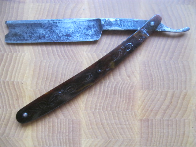 Сделал бы реставрацию и заточку и стала бы нормальная бритва, правда уже без коллекционной стоимости. 32 года активно мусолю харю клинковой бритвой