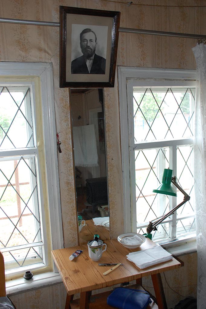 Обстановка очень аутентичная. В деревне не был три года, многое изменилось, однако подарочные лапти висят на своем месте уже лет 10, и портрет прадеда над зеркалом находится наверное полвека.