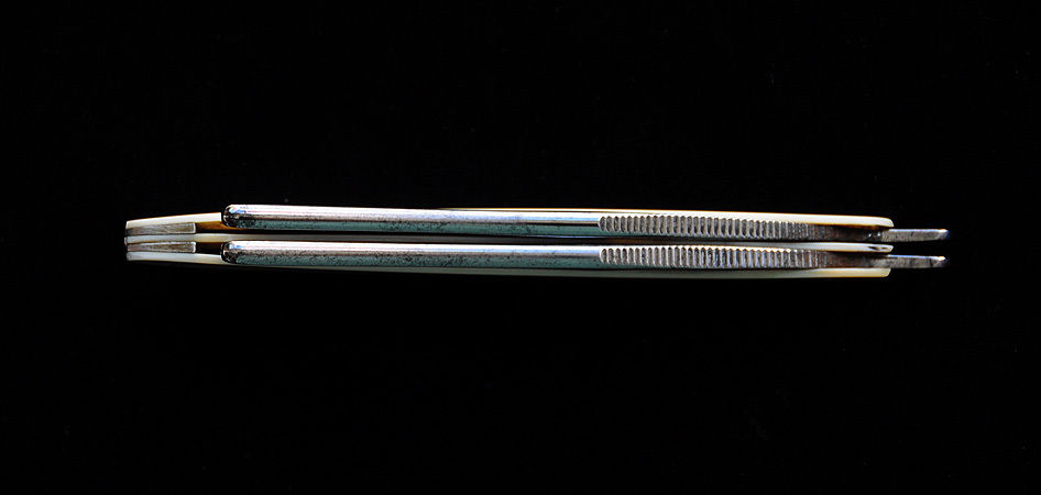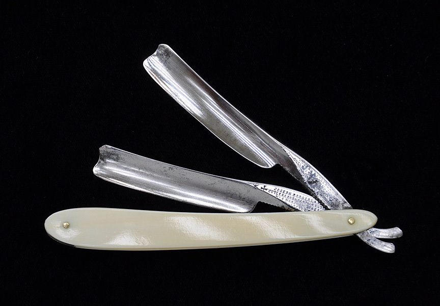Подозреваю, был комплект из двух бритв, одну уронили, и их стало полторы. Хотя оправа, похоже, из слоника.