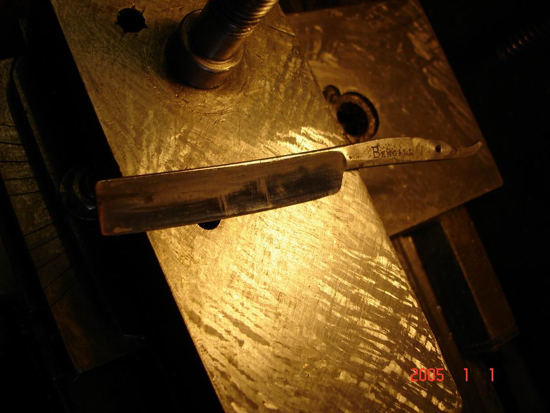 Собрал , и решил перебрать металлолом . Нашёл эту бритву и решил сделать . Вот и всё , дальше дело опыта и набитой руки . Шлифовал на этом чуде , на этом камне . Бритву сделал за час с лишним с перерывом на чай на одном камне , пару часов на ручку и заклёпки . Отдельное спасибо Fransу за пластинку рога , так бы распуская цельный руками стёр бы пальцы З Холодного Яру.