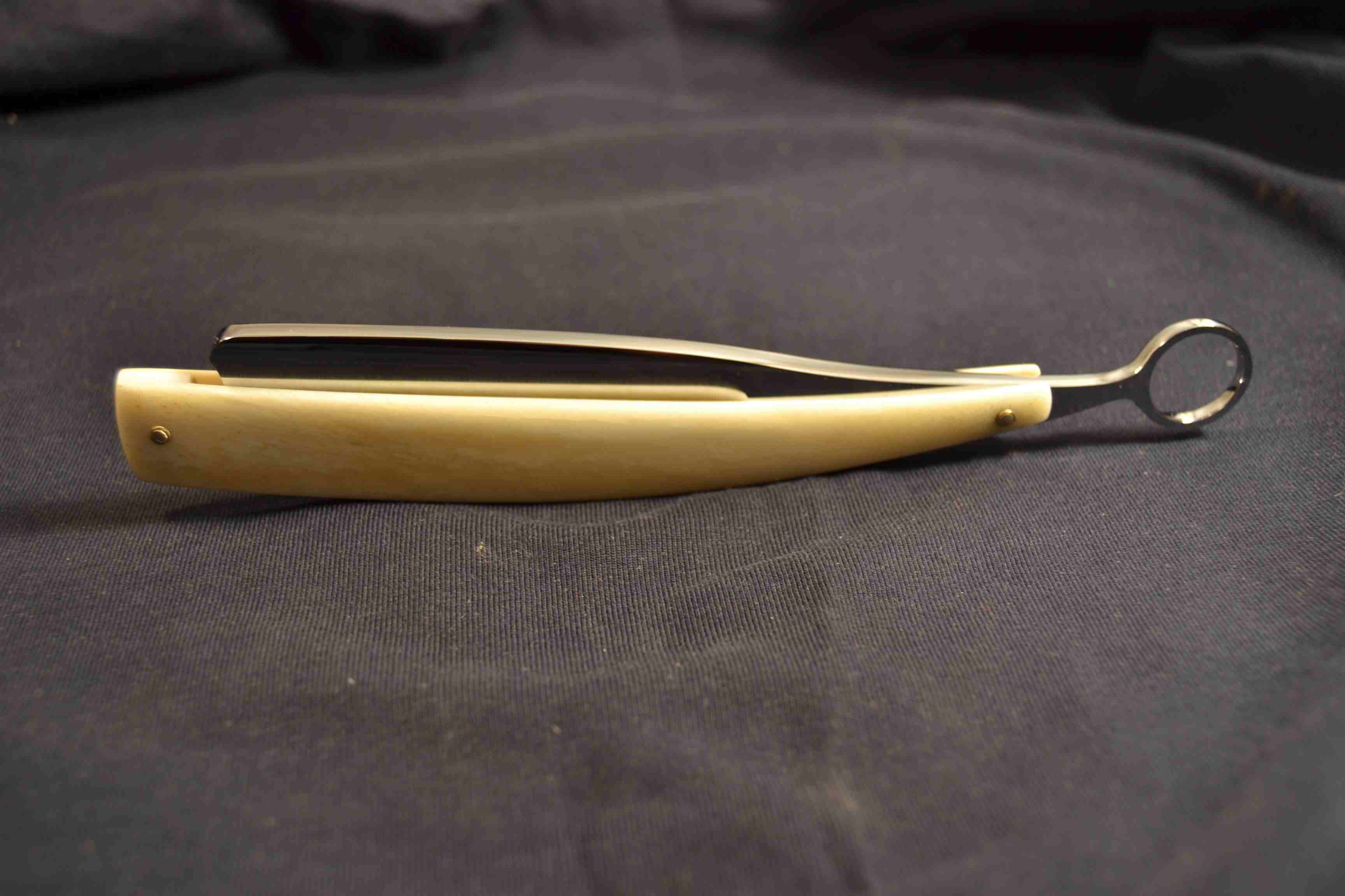 Бритва 7/8 Клинок - Uddeholm Arne ручка - верблюжья кость (что-то прессованное), легко обрабатывается, полируется. Брал на пробу у Boris клинышек - латунь, белый акрил Пины - серебро. Одним ударом дерева не срубишь. . Татарская поговорка