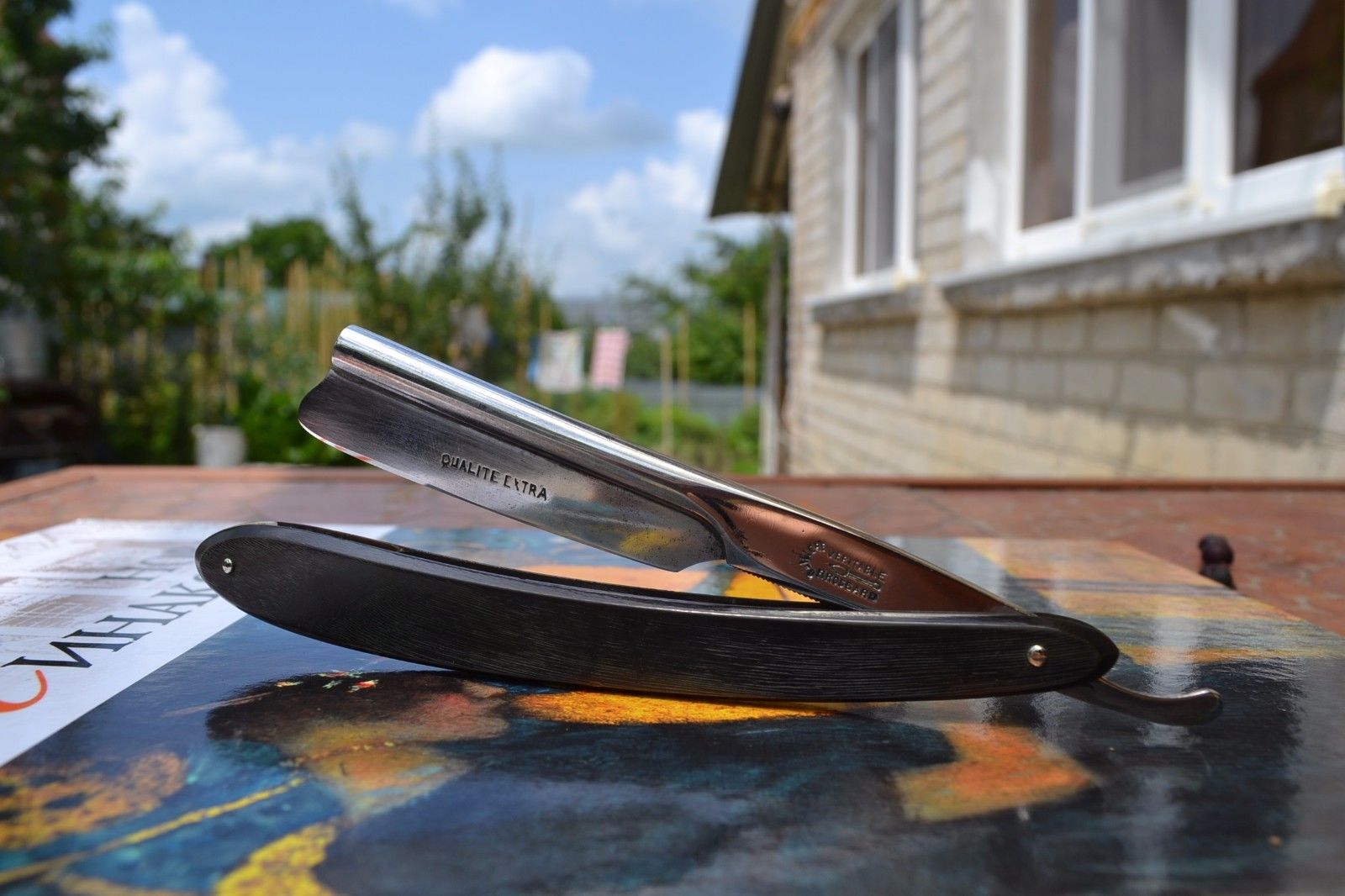 Немецкая опасная бритва из славного города Золинген. Ширина 6/8.(19мм)Толщина обушка 5мм. Углеродистая сталь.Отличная геометрия.Родная 3-х пиновая ручка.Пины латунь.Ручка-пластик.Клинышек тоже. Заточена,готова к бритью. Продана. Spoiler Show Spoiler Show Spoiler Show Spoiler Show Spoiler Show Spoiler Show Spoiler Show Spoiler Show
