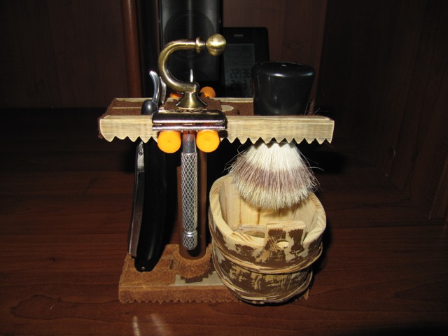 Re: Сваял подставку. Зацените)))Доработал подставку, теперь вмещается три бритвы и тешка, в общем я его слепила из того что было