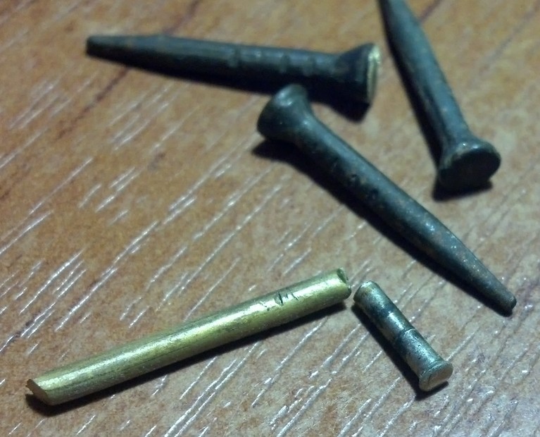 Они, гвозди, латунные. Только чуть толще чем нужно и шляпка у них специфическая конусная. Муссолини харь псевдозаточкой. Типазаточник-параллельщик. Баблосгрёб.