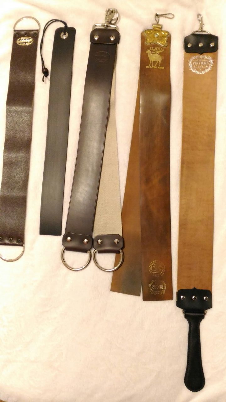 Ремешки пришли качественно упакованные, Кай так вообще человечище – нарисовал стрелочки за какой конец изоленты тянуть, что бы распаковать коробочку Размеры ремней (длина кожи без ручек и подвесов Х ширина Х толщина), мм. Последняя 4я цифра - рабочая часть (за минусом печатей и логотипов, немного отступая от краёв, что бы не зацепить накладки и заклепки): V2 от Кая: 500х60х3,2(суммарно 2 слоя) 380 Синтетика от Тони: 485х50х2,5 340 Ремни от Тони: «кожа» 520х60х3,2 330 «тряпка»: 520х63х1,3 350 Канаяма от wren: «грубый» 600х65х3,5 400 «чистый»: 610х70х3 400 Лошадь от Бритый Чубакка: 620х74х3,5 400 Признаюсь сразу, в первую очередь, интересовали ремни от wren , Бритый Чубакка , Кая И правильно делал: Тони Миллер синтетика сразу в топку (ИМХО) – очень грубый, жесткий, пару раз провел по нему бритвой и больше ремень не доставал. Страшно за бритву. Пластмасса блин. Лошадка от Тони… думаю, зря вы спорили что там за кожа: КРС или лошадь. Ремень крашенный, какая хрен разница что там под краской. Тряпочная стропа – я в них не разбираюсь. Показалась очень грубой, не заглаженной что ли.. Более опытные товарищи потестят. На ремнях правил: шведку Anton Berg (свежая заточка от unsiu), немку Fr.Herder (уставшая уже заточка от wren , просится на пасту), ЗТВ-51 (давнишняя заточка от unsiu, неоднократно испорченная мной, повидала и ГОИ и красный Диалюкс). Последние 2 бритвы бреют не очень комфортно. И вот тут самое неприятное. Я нихрена не понял какой ремень «заостряет» бритву лучше. Беру шведку, 20 кругов на ремне Кая, режет волос в 8-10мм, беру Канаяму, 20 кругов – те же 8-10мм, гоняю на всех ремнях…- 8-10мм. Волос держу за корень (если за хвост, то бритва цепляет за чешуйки и отрывается и в 30мм). Опускаю на РК перпендикулярно или опускаю бритву на волос. Успел пориться шведкой и немкой. Комфортность как обычно. Может получше, но не принципиально. Все-таки многое зависит от прешейва и состояния души, настроения в этот момент. Лирическое отступление про волосы Show я и раньше жаловался на неправильные волосы в моем доме. Мои – лысо-тонкие, режутся в исключительных случаях. Даже если «свежая» заточка у бритвы. После красного диалюкса лучше, затем, после чистого ремня – хуже. И моих волос мало. Длинные равномерные здоровые волосы у дочки, но на расческах они не остаются, а выдирать их из 2,5 ребенка… друзья, простите Волосы жены всегда в достатке, слегка обесцвеченные и очень тонкие. Берешь волос, одна и та же бритва, один и тот же волос – то режется, то не режется. Уже стараюсь и тем же местом РК, и угол держать, и скорость опускания волоса… 100% повторяемости нет. Тут на самом деле надо сертифицированные волосы иметь, как кто то из форумчан уже шутил. Появился результат. После бритья волос не режется. Но 20 кругов на любом из ремней – те же самые 8-10мм. Надо бы попробовать одной и той же бритвой бриться 1-2-3-4 раза без правки на ремне, дождаться ощутимого снижения комфортности и уже после этого тестировать ремни. Бреюсь раз в 2-3 дня, держать долго ремни у себя как то стремно. Короче, либо у меня руки кривые, либо хз. Сегодня перед работой брился немкой, не «сушил». Вечером еще попробую ремешки и добавлю впечатления. Но что то есть грустное подозрение, что результат будет тот же. Несколько слов о субъективных ощущениях (хотя тесты были тоже не особо объективные). Тони Миллер, как уже и говорил – не заинтересовали оба ремня. Синтетика от Кая – очень интересное ощущен
