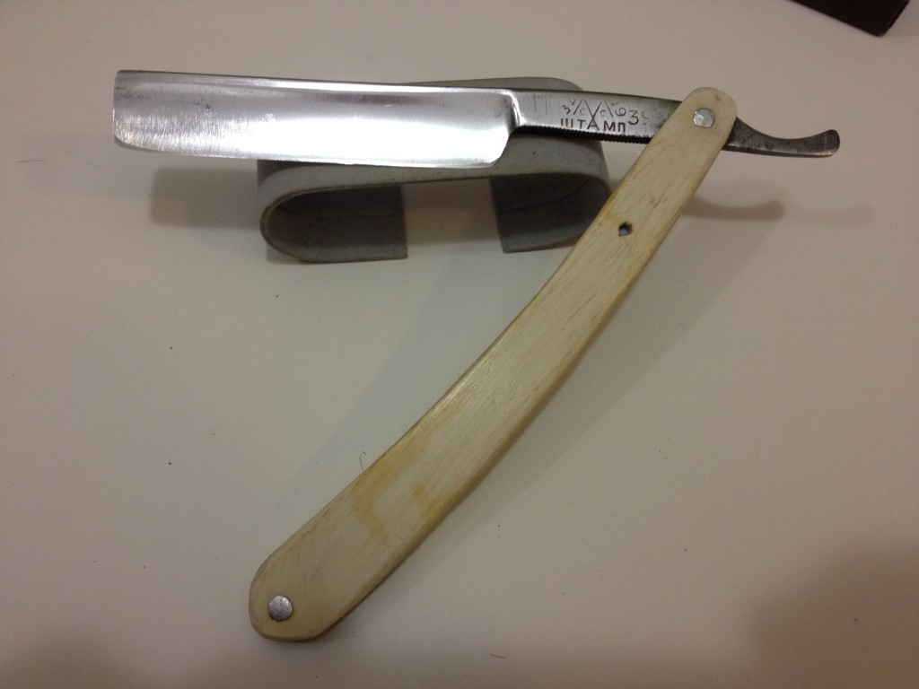 Re: Помогите оценить бритвыОчень похож на СТИЗ, имею похожий без опознавательных знаков, предположительно после 70х ИМХО 500-700, ручка не родная, надо чистить и точить. Возможно кому накладки с №1 на ручку будут интересны, остальное в утиль проще, ну или раздать желающим как тренажеры по восстановлению и заточке. Большая часть ручек отвратно переклепана, не родные, треснутые. Перестаньте тереть, не успеваю выделять смазку !!!
