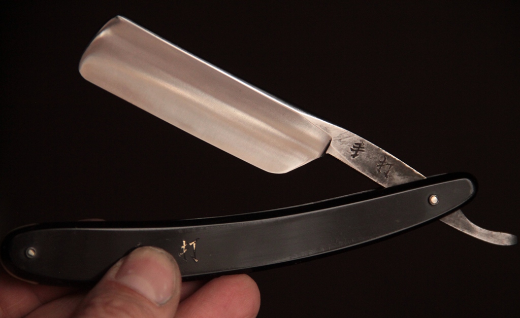 Совершенно нетронутая бритва ни временем, ни заточными камнями. Как по мне, так не только исключительная по красоте бритва, но также и отличный инструмент в опытных руках. Прекрасное, мягкое бритьё. Проверено не раз.
