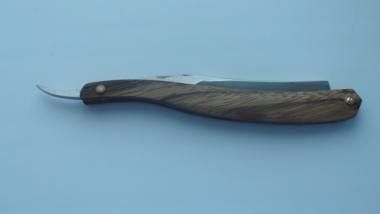 Кратко о бритве. При заказе бритвы была прислана фото бритвы Левиса со словами- "вот что то типа этого" После обсуждения появился такой вариант. Изгибы (изящество) + грубая железка( полированный сатин)При получении заказчик был доволен как форм фактором так и габаритами. Материалы У10, зебрано. закалка с самоотпуском.