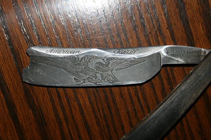 Интересно, что сталь, из которой выполнена бритва, очень слабо поддается коррозии или появлению патины. Когда получил бритву было видно, что ей пользовались, но полотно за 150 лет осталось практически без следов времени. Заметил, что те же батчеры того же периода покрываются сильной пaтиной и точечными очагами коррозии. Мой батчер за несколько месяцев использования потемнел в верхней части, где пальцы во время бритья держат бритву (хотя всегда очень тщательно удаляю влагу с бритвы после бритья).