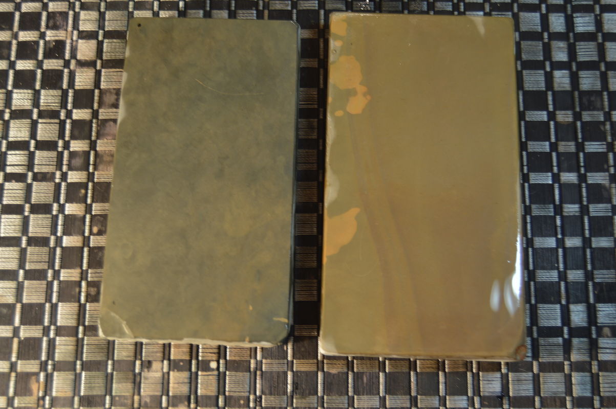 Re: Продаётся от artemarut1Spoiler Show Пара Японских камней, бритвенные камни высокого качества, нет никаких вредящих линий или включений, чистая дорогая порода, спекулировать названиями известных шахт нет желания, видно что не новодел, оба бархатистые, Намазу(с желтыми пятнами) наиболее, при прикосновении создается впечатление что это мягкая кожа хотя камень твердостью 4+, при заточке бритва не залипает, трение равномерное при движении, камень очень харизматичный, редкий. Карасу(цвет воронова крыла) более твердый 5 и тот и другой достаточно быстрые, Карасу свою суспензию дает если работать с более твердой нагурой, Намазу дает легче как и свойственно камням такой твердости. Размеры Карасу142/78/25мм. Намазу 153/85/21мм.РезервЦена Продан за Намазу и Продан за Карасу включая дорогу по России, в другие страны по договоренности. Spoiler Show