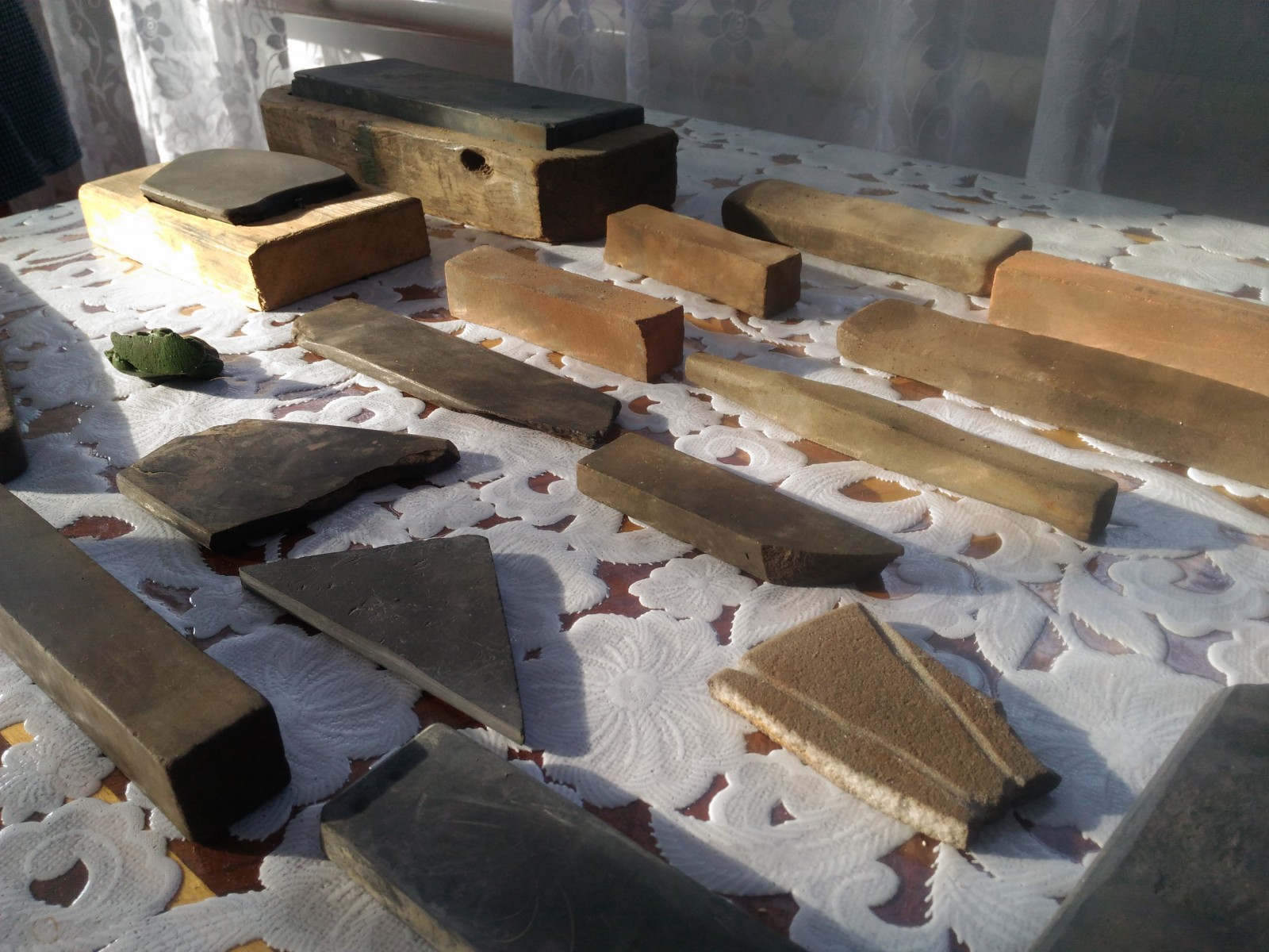 Re: Помогите разобраться в камняхБруски для кос пока в сторону, а более гладкие — наверняка "правильные", после выравнивания станут пригодными для заточки бритв.