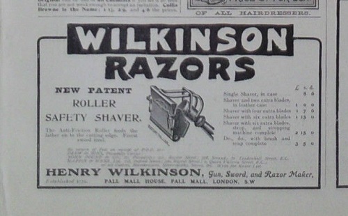 Re: Г-образный станок Wilkinson Sword Co.Несколько рекламных объявлений с прошлого столетия.