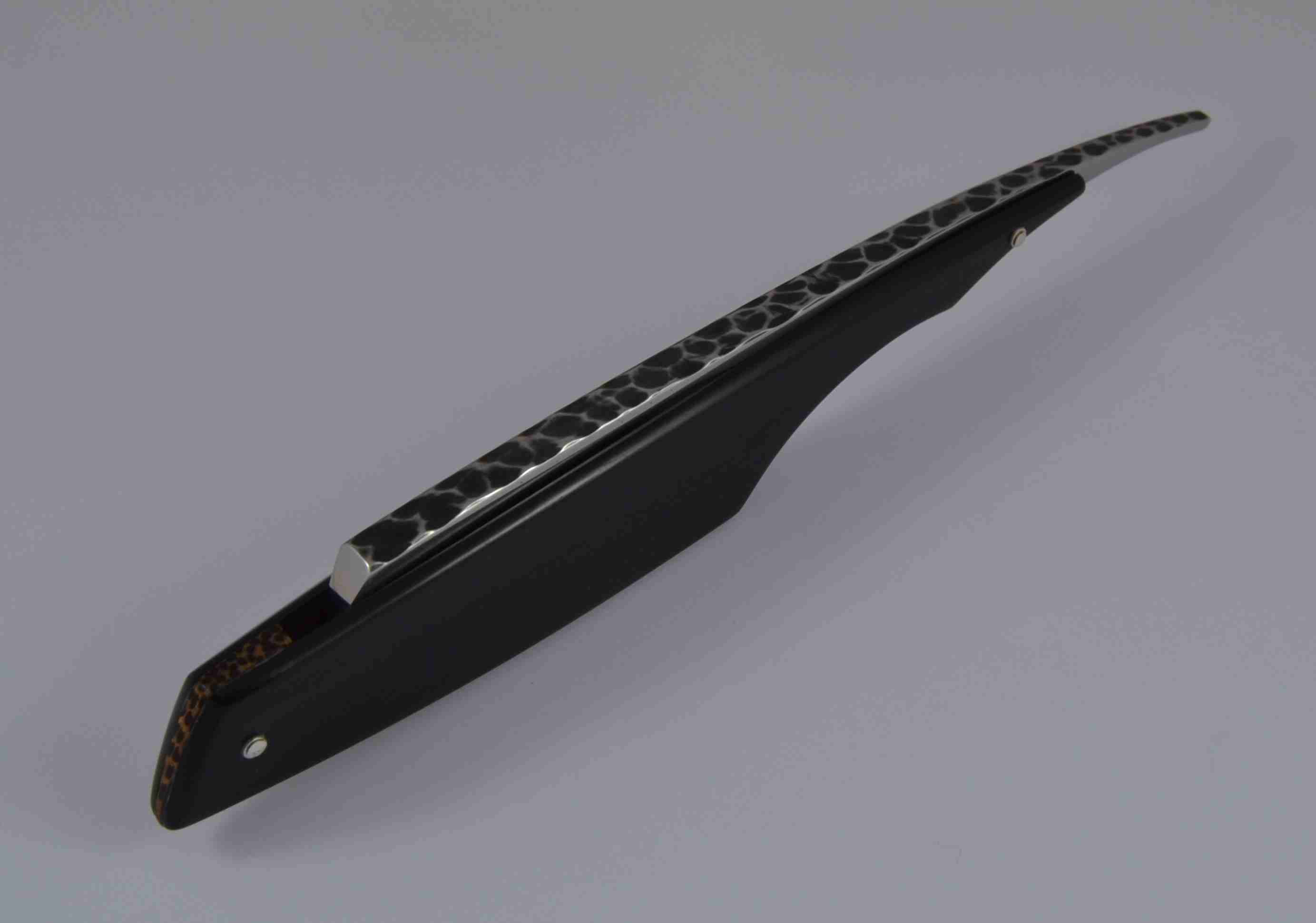 У10А и 50ХНФ, рисунок ступенчатый, 150 слоев. Выбрал этот рисунок из-за раномерного выхода обеих сталей на кромку. На спинке бритвы рисунок слоев в виде волны виден только в лупу. Дамаск больше проявляет свои свойства при резе, те на ножах. На бритвах применение дамаска ставит задачу сохранить свойства "обычной бритвеная стали". Применение обусловлено исключительно красотой дамаска. Мне он тоже нравится. Со временем на кромке разные стали будут правится по разному, появиться микропила (для данного пакета). Время покажет, как это отразится на комфорте бритья. Надеюсь хозяин бритвы к этому времени не потеряется и даст оценку. Одним ударом дерева не срубишь. . Татарская поговорка