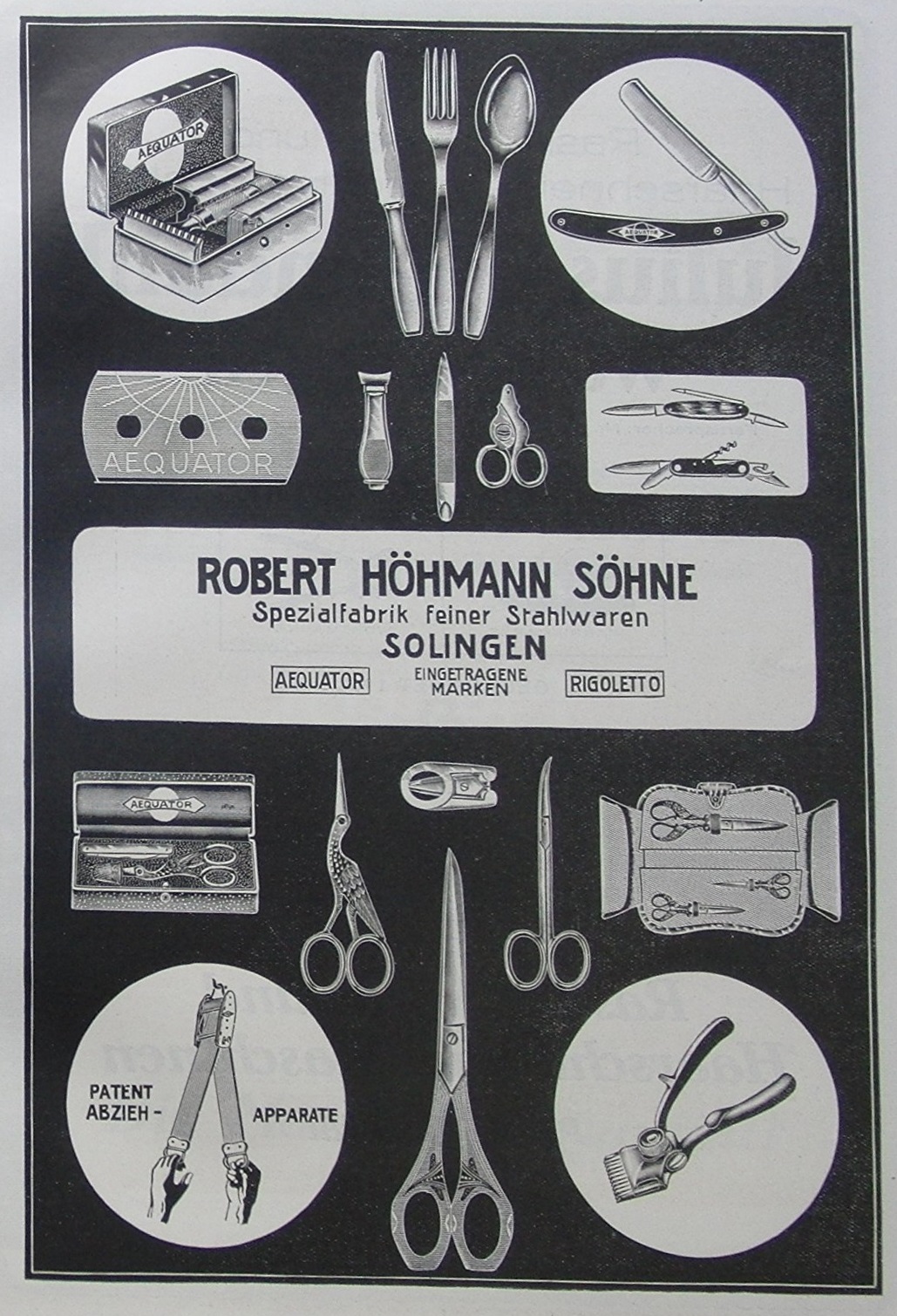 Robert Höhmann Söhne, Solingen Germany. Brand names include Aequator, DK, Esperanto, Höhmann, Rigoletto & Terra. Straight razor maker. Добавлено спустя 1 час 19 минут 17 секунд: Re: Определение производителей по кодам, аббревиатурам, клеймам. Есть инфа в талмудах, достойнее этой в 200 раз. Но не выложу и не дам, ввиду дебильного воровства одного из пустотрёпных ресурсов по женским сиськам. Тащат тексты, переписывают слова, типа это их. Ждите книгу, там почитаете. Книгу начал готовить. Минимум два года на сбор материалов. Ремонт опасных бритв, звонить с 11-00 до 23-00, +79267729357, (whats app, telegram, VK), спросить Олега.