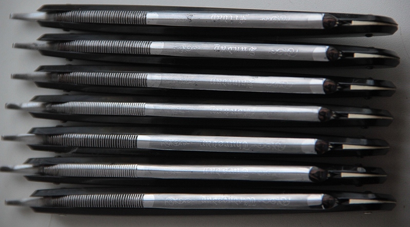 Уникальность, на мой взгляд, состоит в том, что за столько лет ни одна из бритв не была использована хоть раз. Бритвы совершенно непользованные и ни разу не точены на камнях. Присутствовала только заводская заточка. Состояние близко к идеальному. Ничего не разбирал и не ремонтировал. За пол часа немного освежил металл полиролькой, сняв вековую патину с полотна и немного вычистил у осевого пина окисление металла с оправой.. Заводской гринд полотна остался на 6 бритвах.( Только одну пришлось немного взбодрить на тонкой шкурке.) По всей видимости, бритвы не только не были в употреблении, но и редко вытаскивались из родного кейса. Царапин или дефектов на пластике ручек не обнаружено. Идеальная геометрия изготовления. Кромочки равномерны по всей длине. Никакой коррозии или иных дефектов нет.