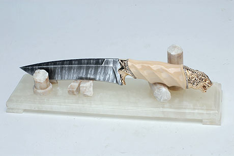 Материал: Коррозионностойкая сталь 440С, слоновая кость, серебро, ножны из серебра и кожи ската