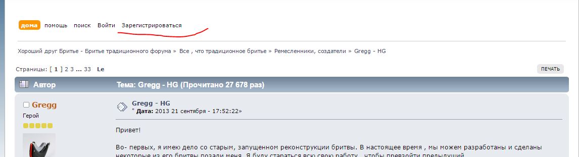 Другая страничка, начало его темы на форуме: